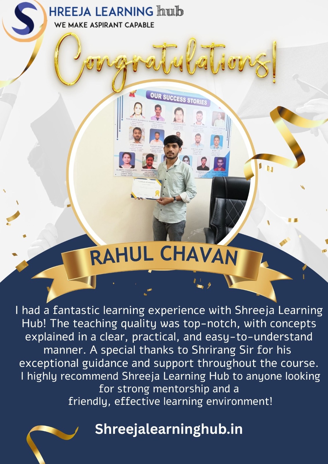 Rahul shares why joining Shreeja Learning Hub was one of his best decisions, highlighting the well-organized course structure and knowledgeable trainers.