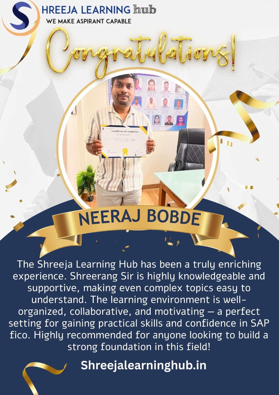 Rohit discusses how hands-on sessions and expert guidance at Shreeja Learning Hub prepared him for corporate challenges in SAP.